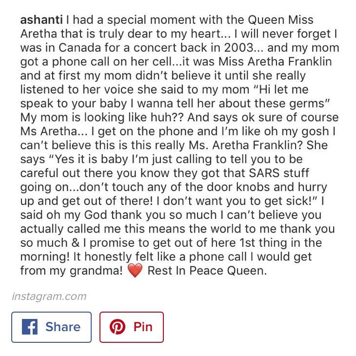 : So Aretha Franklin called Ashanti up totally out of the blue to warn her about the 2003 SARS outbreak