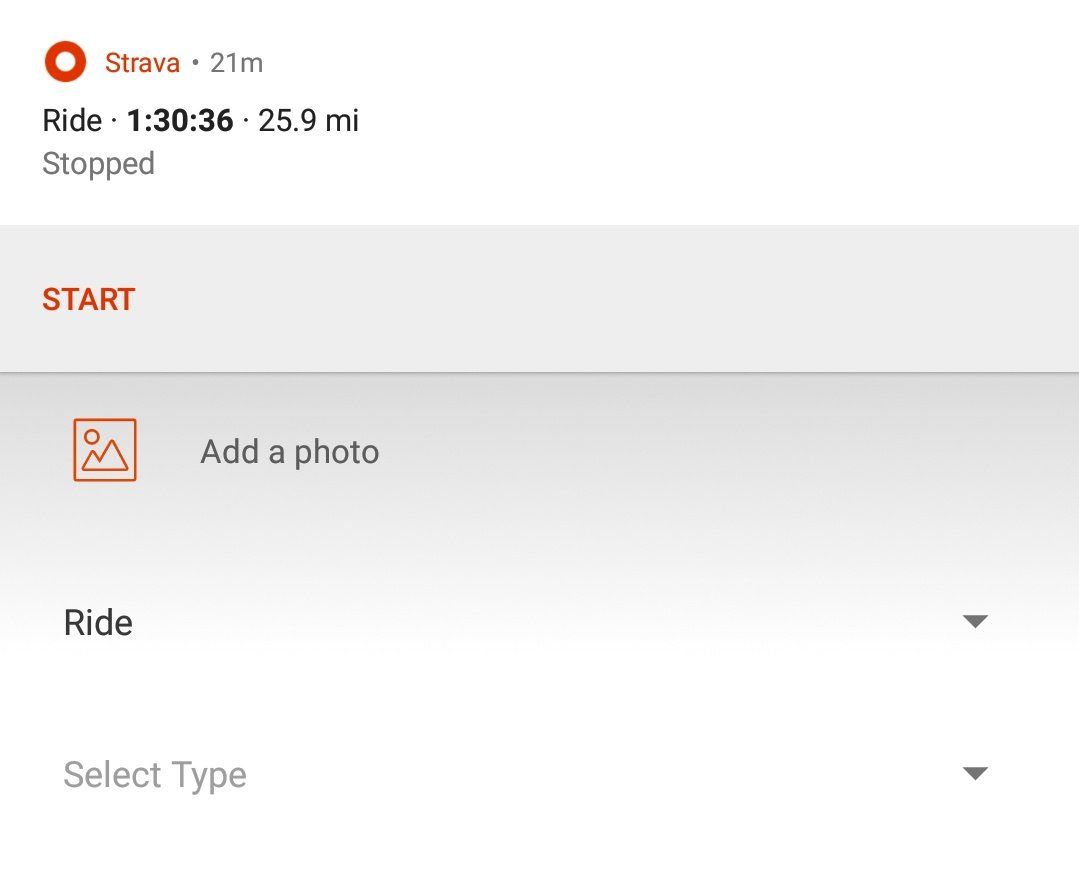 @StravaSupport A new update to your Android app means I see this full screen overlay message whenever I start and finish a ride. The latter is super annoying as I can't enter a title for the ride or save it until the notification (which I can't dismiss) disappears. Any fixes?
