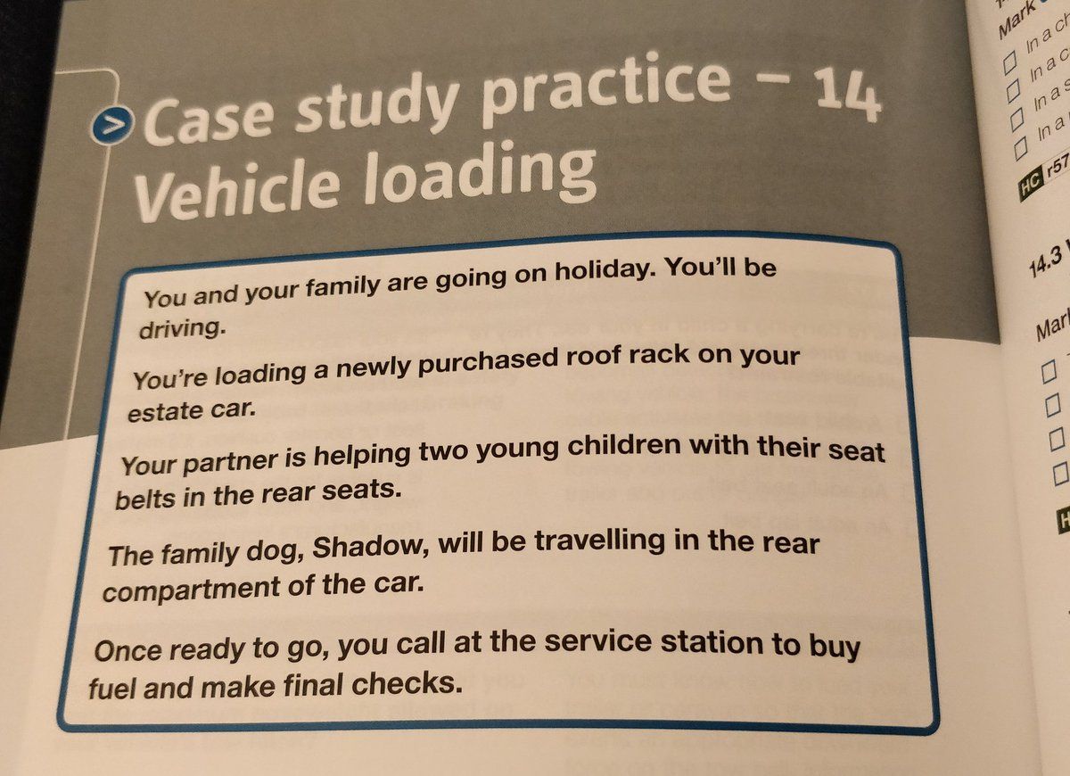 Just did my driving theory test. When revising, I particularly enjoyed the extraneous detail in this case study: