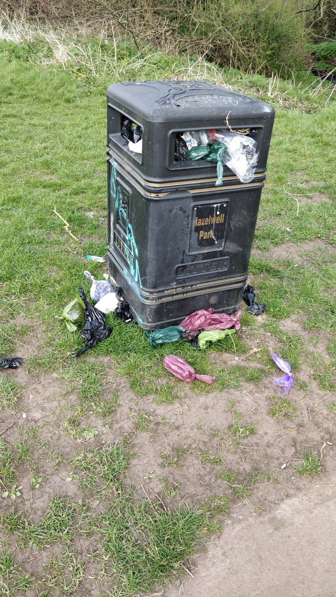 Dog walkers: while the bins aren't being emptied, maybe consider taking your dog's waste home and throwing it away there? This (below) helps nobody.
