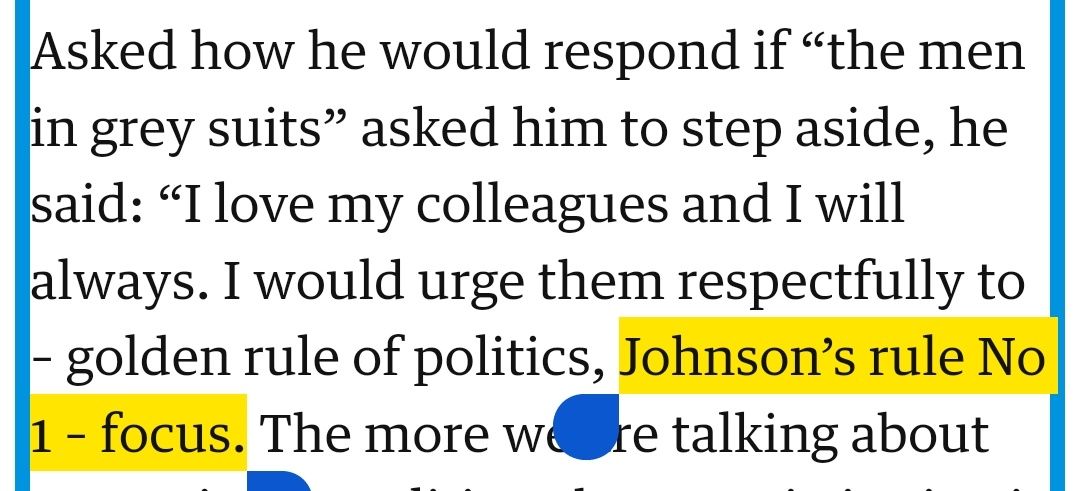 If there was ever any doubt that Boris Johnson is a rule-breaker, just consider that his own *personal* "rule no. 1" is... focus. How's that going?