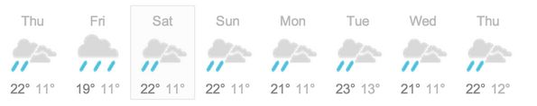 Going on a week's holiday this Saturday to Bordeaux. This is the weather forecast while we're there: