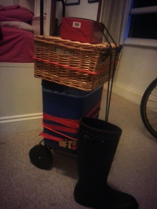Glastonbury veterans: am I setting myself up for hell with this DIY collapsible booze trolley? Welly for scale.