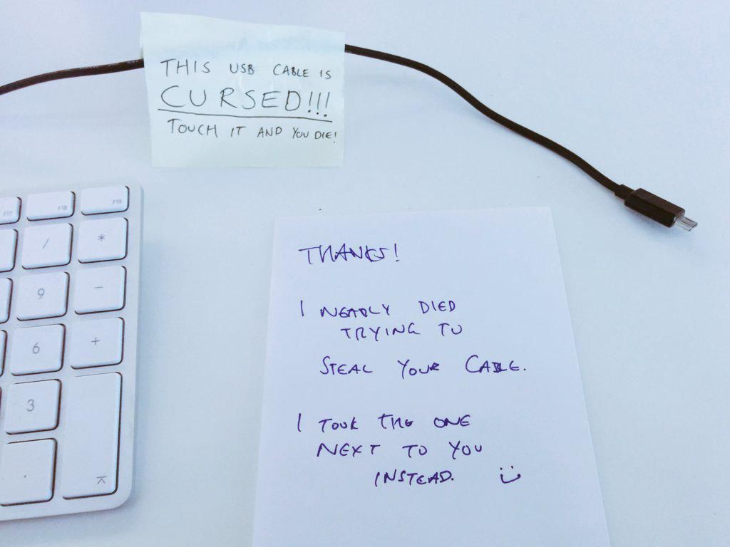 Looks like the warning note I put on my desk phone charger worked: