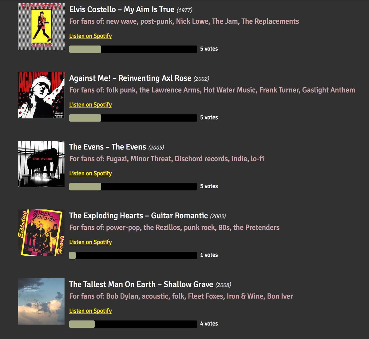 (and vote for the album we'll play)