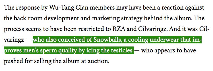 This aside in an article about the Wu-Tang Clan's $5m album jumped out at me, for some reason: