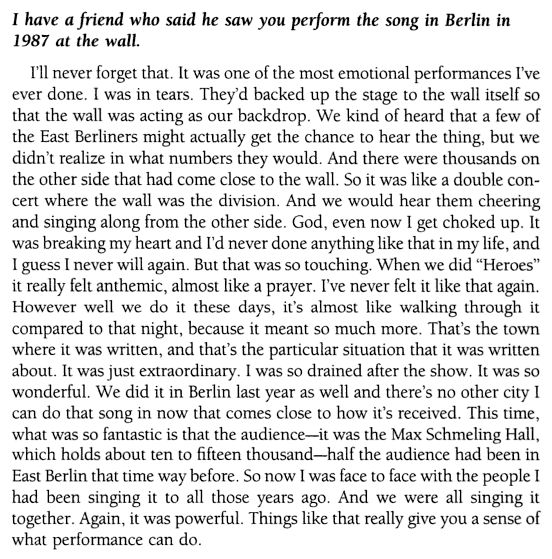 : David Bowie talks about performing Heroes at the Berlin Wall