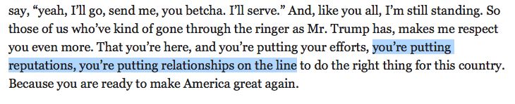 Amongst the incoherent babble, I found this interesting from Palin on Trump, acknowledging impact of supporting him