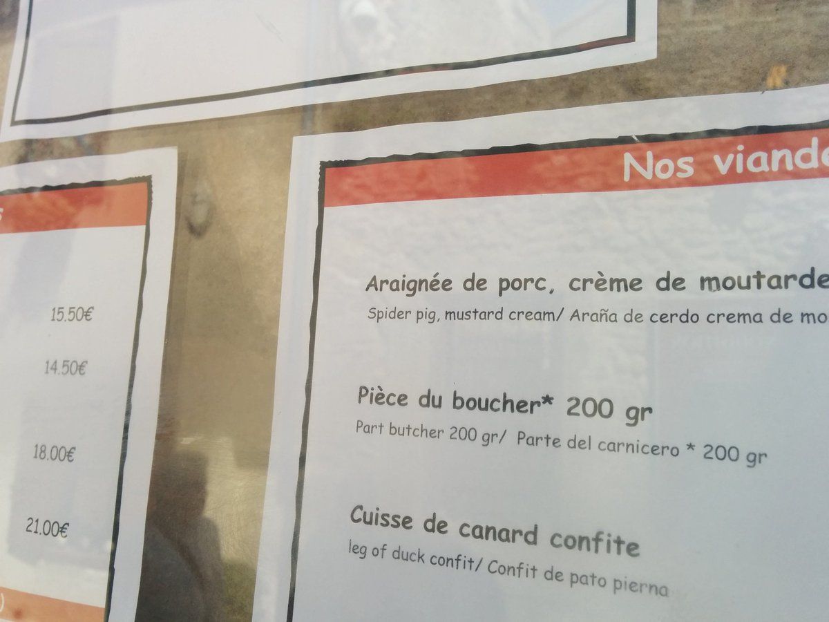 Back from holiday. Can any French speakers tell me if this a mistranslation or if there is genuinely a "spider pig"?