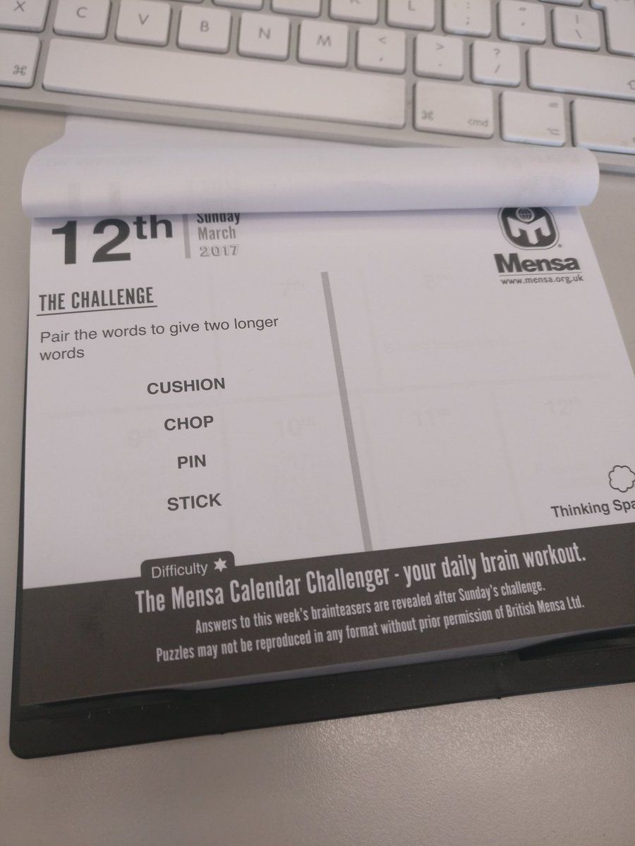 Got one of those daily Mensa puzzle calenders for Christmas. They really stopped trying with Sunday's question.