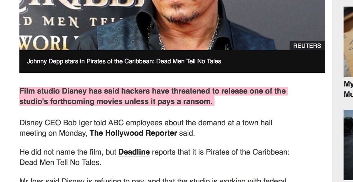 I like that the Disney hackers have "threatened to release" the next POTC movie. NO NO KEEP IT SECRET FOREVER WE DON'T NEED TO SEE IT