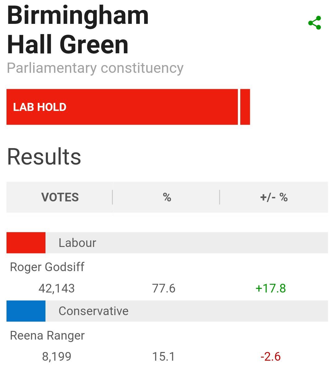 Well, despite the uninspiring candidate, looks like most of my constituency felt the same. 77% of the vote!