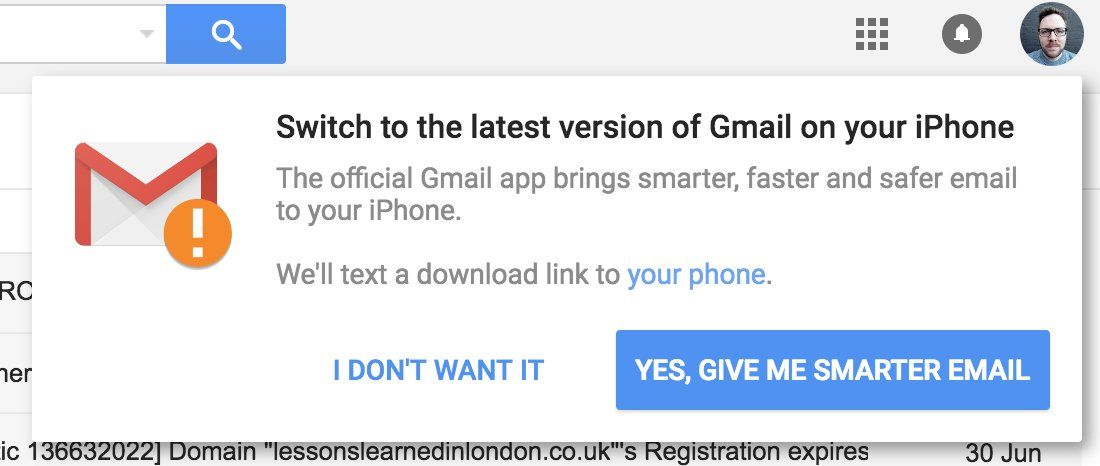 Gmail is prompting me to install the new iPhone app. Google knows I have never owned an iPhone. What else do they collect all my data for?